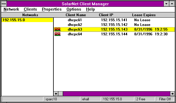 Since we have looked at high-end systems for Sun, NT, OS/2 and NetWare servers, we should also include the low-end of the scale. FTP's OnNet Server is a 16-bit general-purpose IP server that runs on Windows 3.x or Windows95. The services offered in the suite include more than just a DHCP server. Currently, however, the software runs only on Microsoft's or FTP's TCP/IP stacks.