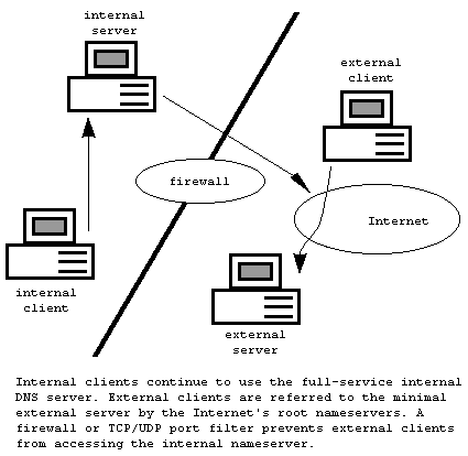 However, there are additional issues surrounding the use of private DNS servers. For example, you probably will want to block external access to the private DNS server. Otherwise, smart hackers and sales representatives will be able to locate and identify your resources simply by explicitly pointing to your internal DNS server, bypassing the external one. To prevent this, you need to install a firewall or TCP/UDP filtering on your Internet connection.