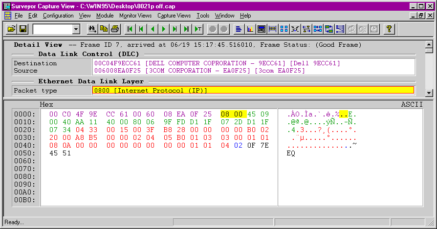 In particular, since the data is inserted before the 802.3 length field (or Ethernet II's ethertype field), any product that expects to see length or ethertype data at that location will not find it. Instead, it will see "8100," the new Tag Protocol Identifier field's default value for 802.1Q frames. Packet captures from Shomiti Systems' Surveyor network analyzer were able to decode 802.1Q data, but all the other decoders we tried displayed the frames as either "unknown ethertype" or "Wellfleet" (the latter used the 8100 ethertype at one time).