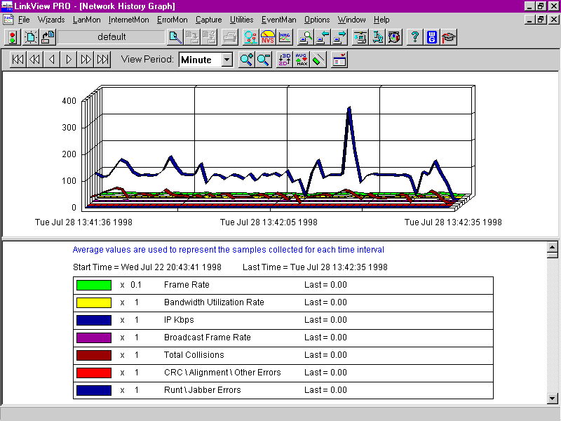 The LinkView family shares a lot of traits—all products provide fairly robust network-monitoring services. In particular, I found the historical graphing capability to be very useful: I could monitor the impact of different applications on my network in a somewhat real-time fashion. The products have alarms and event-based triggering capabilities, allowing you to start a capture when a certain condition (such as bandwidth utilization) is met.