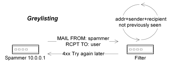 Another popular mechanism is "greylisting," which makes use of simple delivery deferrals in order to ensure that the sending SMTP client is not a bulk-spam agent. In this model, the first email from an particular sender is rejected with a temporary failure, but any subsequent emails from that same sender and SMTP client are allowed to pass through, on the assumption that a legitimate mail server will retry delivery but a bulk-spam agent will not. However, it is important to note that these systems do not actually validate the message sender, nor do they prevent undesirable content from entering the network, but instead only verify that the sending client is conformant with the SMTP specifications. Furthermore, not all legitimate mail passes through systems that are conformant with the specifications, meaning that this approach can introduce a fair number of false positives. Also note that greylisting only works if you are able to defer the initial transfer (meaning that this filter must be used at the edge of the network), but several organizations also prefer to only use this tool with mail that has a probability of being spam (thereby avoiding problems with broken SMTP clients). Cumulatively, this can mean that the filter has be called after the edge-based probability scoring, but before the transfer has been acknowledged, which can be difficult to implement.