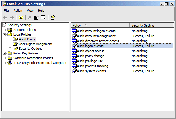 By default, Windows systems will log most system-level events on their own without any further administrative action being required. Some events are only enabled after a related set of system "auditing" features are also enabled. For example, if you want to generate events and traps whenever logon operations fail, you will need to enable the "Audit logon events" option in the appropriate Windows policy editor. Similarly, if you want to generate events and traps whenever a system is rebooted, you'll need to enable the "Audit system events" option in the same policy editor.
