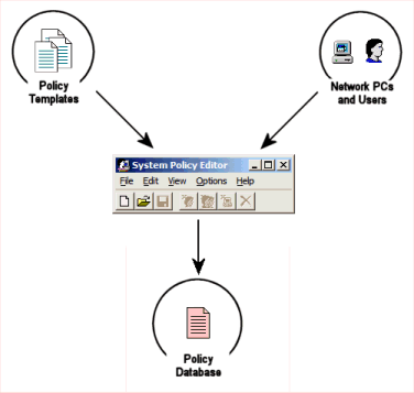 At the heart of the system is the policy management console, which is where you define the specific policies that you want for your network. Second, the policy management tool uses "administrative templates" in order to determine which policies are available to be defined. Once the appropriate policy templates have been loaded, an administrator can choose to assign specific policies to specific PCs and/or user accounts, or can define default policies that apply to all of the resources in the network. After the policies have been defined, the resulting policy database must be saved as a file on the network, which the individual PCs will pull down whenever a login operation occurs.