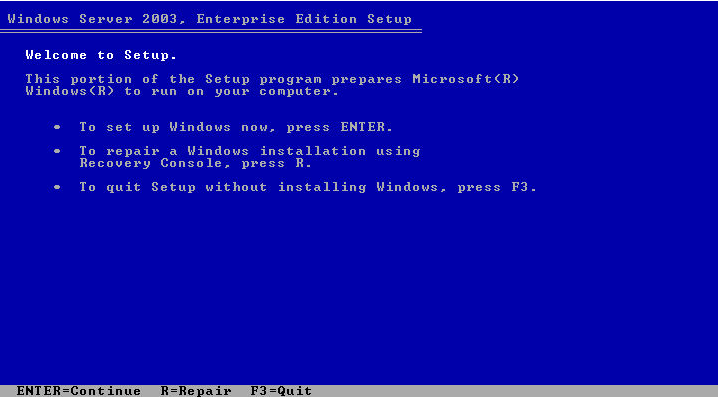 If you are prompted to reformat the drive for NTFS, choose "no." Since we are going to reuse the installation files for the recovery console, we want to minimize any variables, and the last thing we want is for our recovery console to be reformatting drives on systems we're trying to fix.